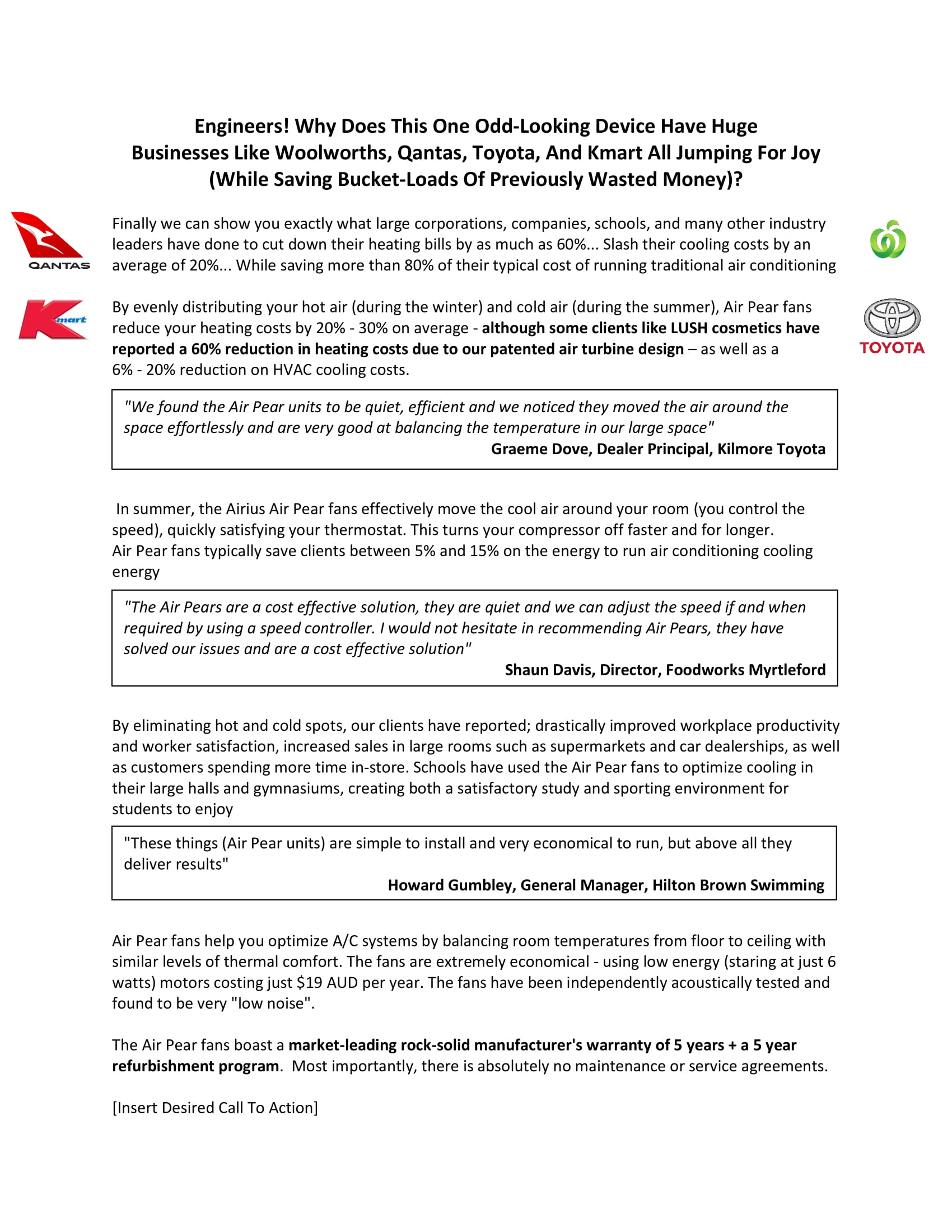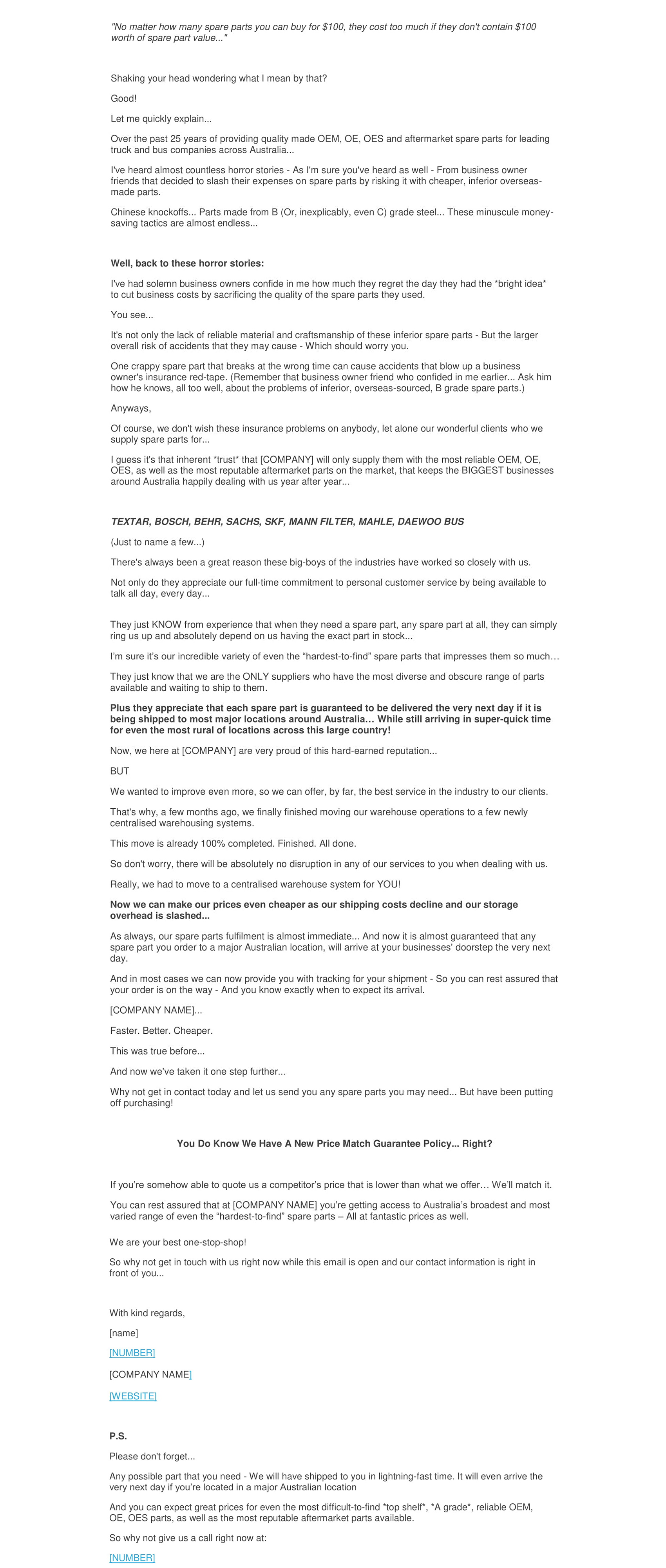 4) Another “left fielder” project helping a client sell diesel trucking parts. I’ve included this sample to show that nothing is “too boring” or “uninspiring” to create an interesting story about and help sell the living daylights out basically any product – As long as it is good and actually brings value to the end customer.