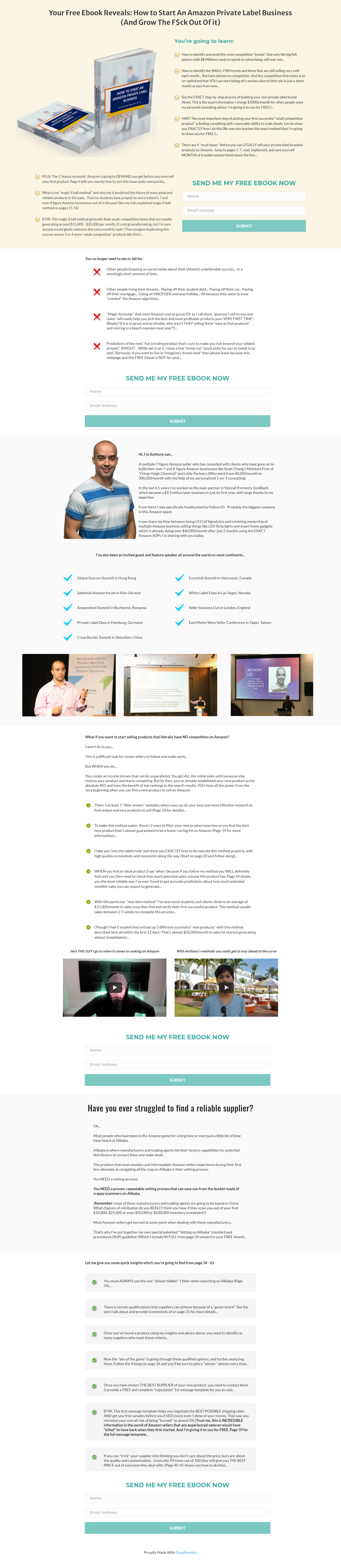2) A biz-op product by an Amazon ranking expert, who is now selling his SOPs (Standard operating procedures) to others who would like to improve their Amazon product ranking. My web-team also did the complete design for this sales-page, though we were limited to working on the client’s “drop funnels” software.