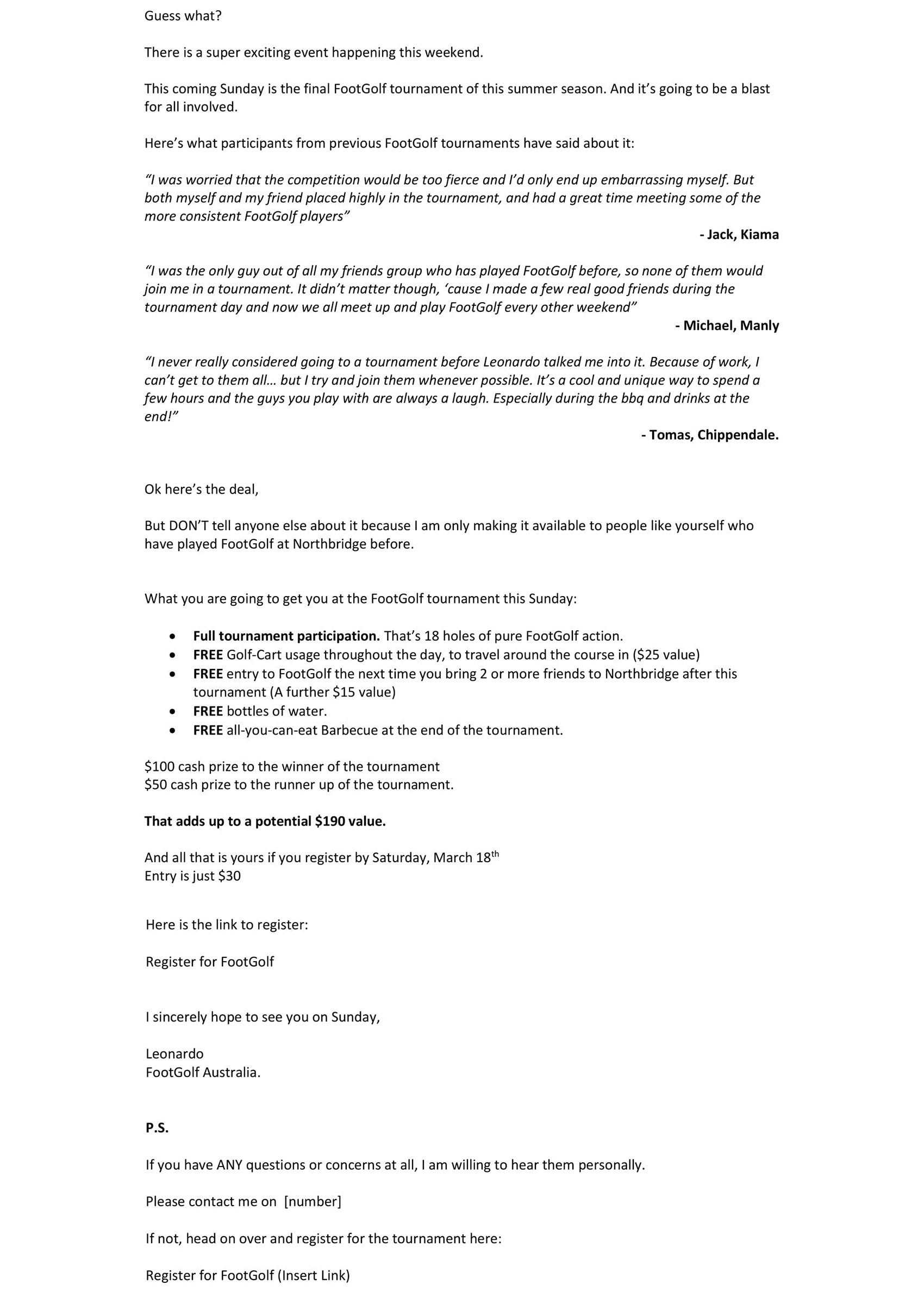 Long Form Soft Selling FootGolf Email – [SAMPLE Zachery Vellis]