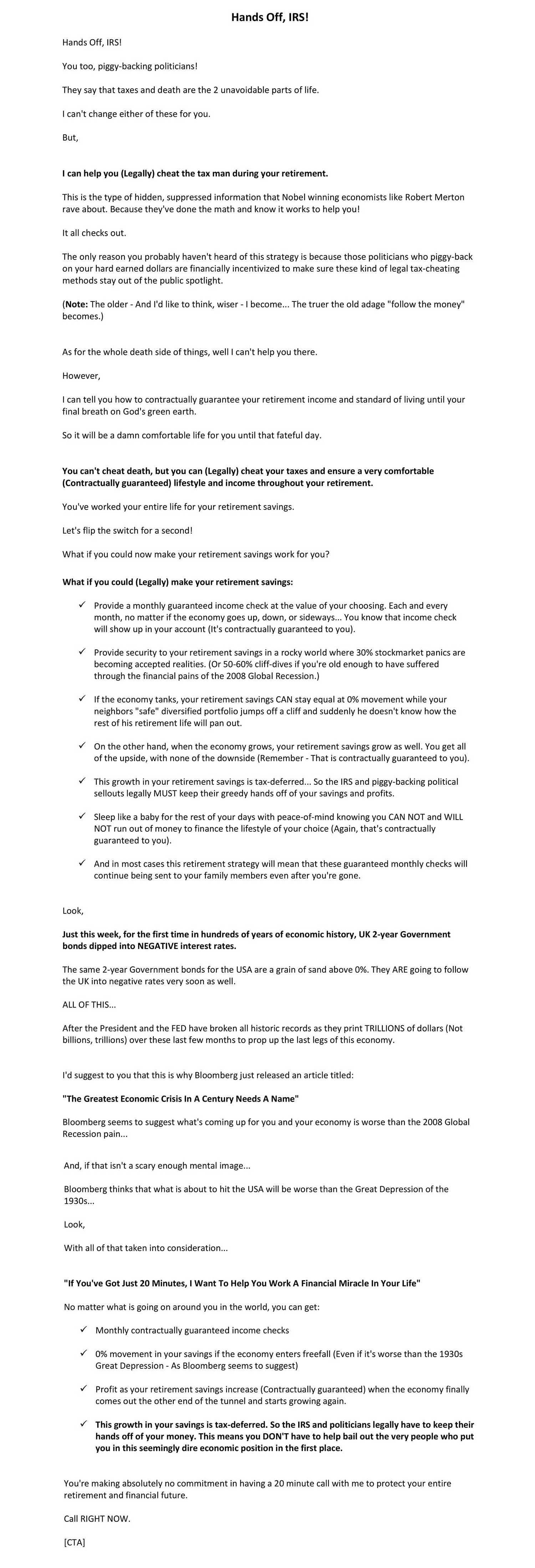 Long Form Sales Email – Financial Annuities Retirement 02 [SAMPLE ZACHERY VELLIS]